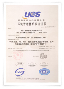 申新包裝環(huán)境管理系認證證書